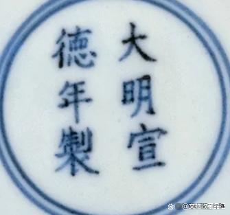 “大明宣德年制”六字二行楷书款,宣德本朝